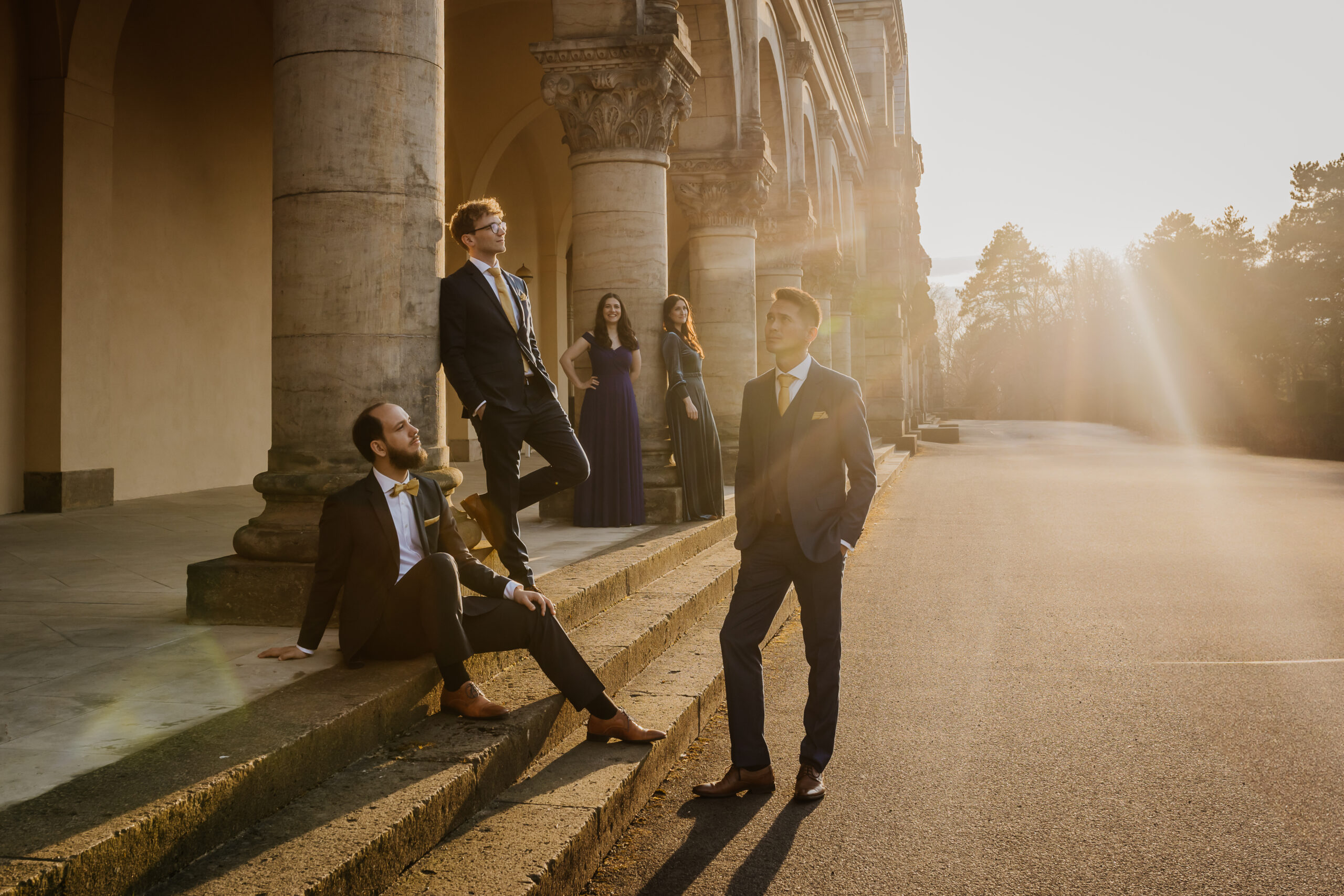 Dieser Mission nimmt sich Calmus auch im Konzert an – gewohnt stil- und epochenübergreifend. Sie bewegen sich zwischen Barock (Johann Grabbe: Lasso, perché mi fuggi) und zeitgenössischer Musik (Gordon Kampe: Je deviens fou…) und machen dabei auch einen Zwischenhalt in der deutschen Romantik mit Werken von Johannes Brahms sowie einen weiteren mit Volksliedgut der britischen Inseln (aus: John Rutters Five Traditional Songs). Herausragende Arrangeure haben ihnen außerdem einige der Liebeslieder-Dramen auf den Leib geschneidert. Dazu gehören Haus- und Hofarrangeur Juan Garcia mit Hallelujah (Leonard Cohen) und Another Love (Tom Odell) sowie Ex-King’s-Singer Philip Lawson mit dem titelgebenden Arrangement von Fritz Kreislers Liebesleid. Denn neben all dem Herzschmerz bleibt am Ende wohl auch immer die Gewissheit: „Und bist du mal betrübt, verzag‘ nicht, denn immer wird’s so sein wie heut‘: auf Liebesleid folgt Liebesfreud.“